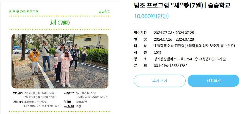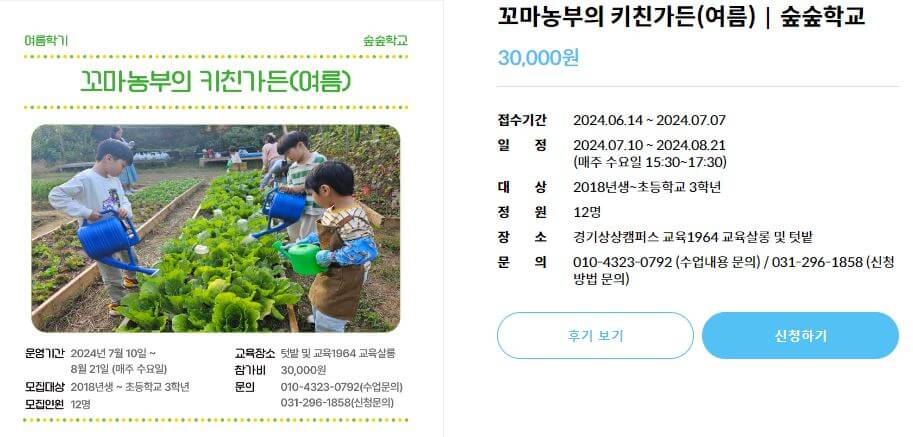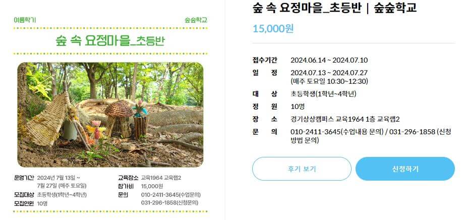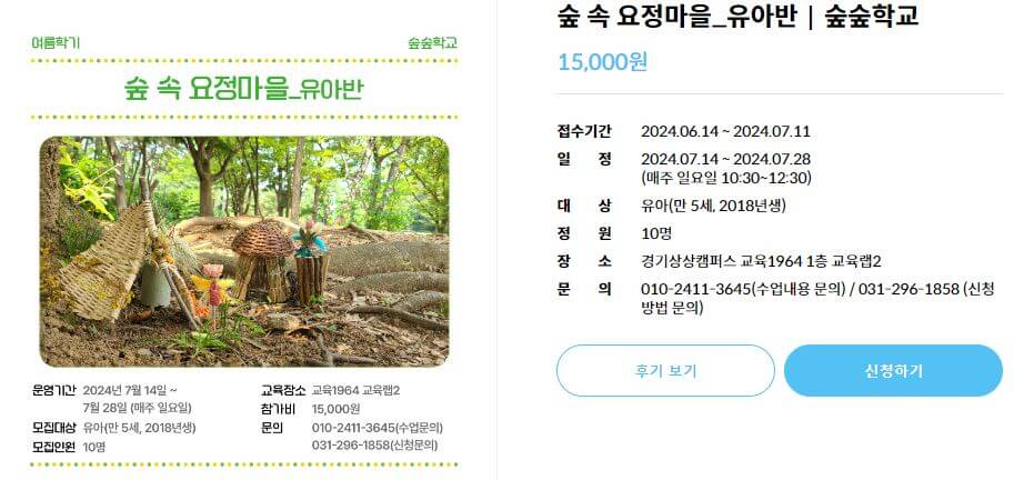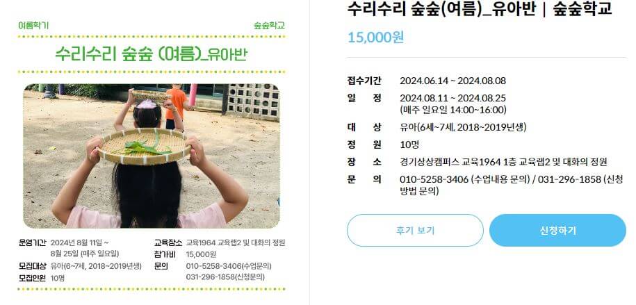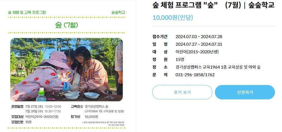 경기상상캠퍼시는 유아부터 초등까지 정말 다양한 프로그램을 운영중에 있습니다. 참가 인원이 제한되있다고 하니