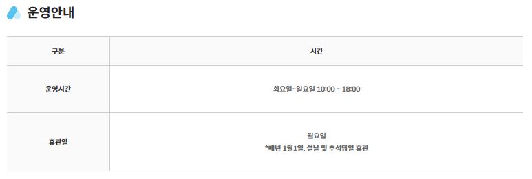 - 야외공간은 휴관일 관계없이 언제든지 자유롭게 이용 가능합니다.