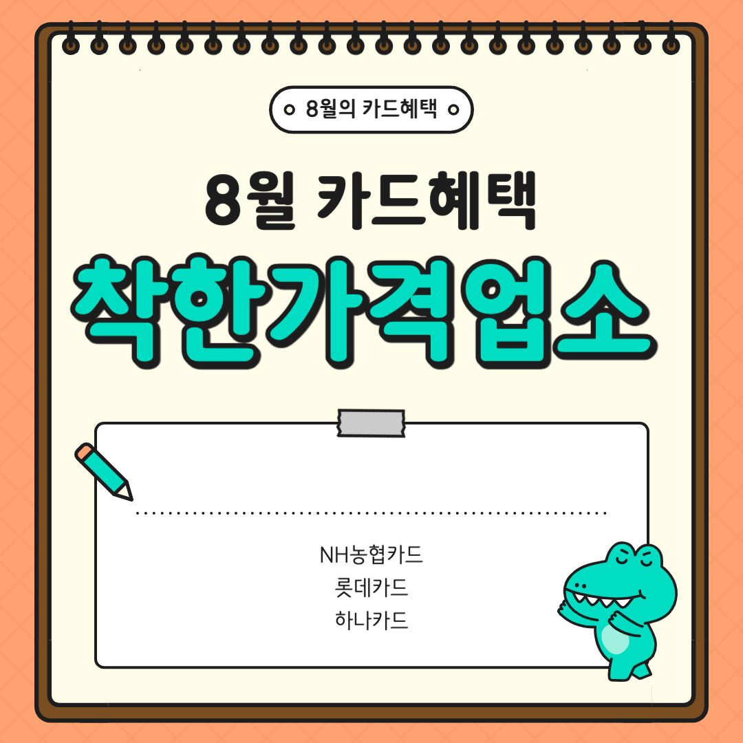 매달 진행되는 카드혜택 꼭 챙겨가시고 8월 카드 혜택 꼭 확인하셔서 혜택 챙겨가시길 바랍니다.